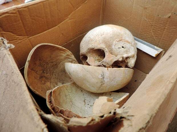 Um crânio sem a parte da mandíbula e três calotas craniadas foram encontrados em uma caixa, em uma casa em Presidente Prudente (SP). De acordo com o morador do local, Benedito Cabral, o material estava na laje da residência.