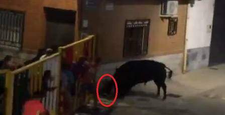 No vídeo, é possível ver que um dos animais sai em disparada na direção do homem que filmava a tourada, do lado de fora da cerca de segurança. A vítima não percebe a aproximação do bicho. O homem é lançado ao ar, cai no chão e recebe várias chifradas. A cena choca as testemunhas.