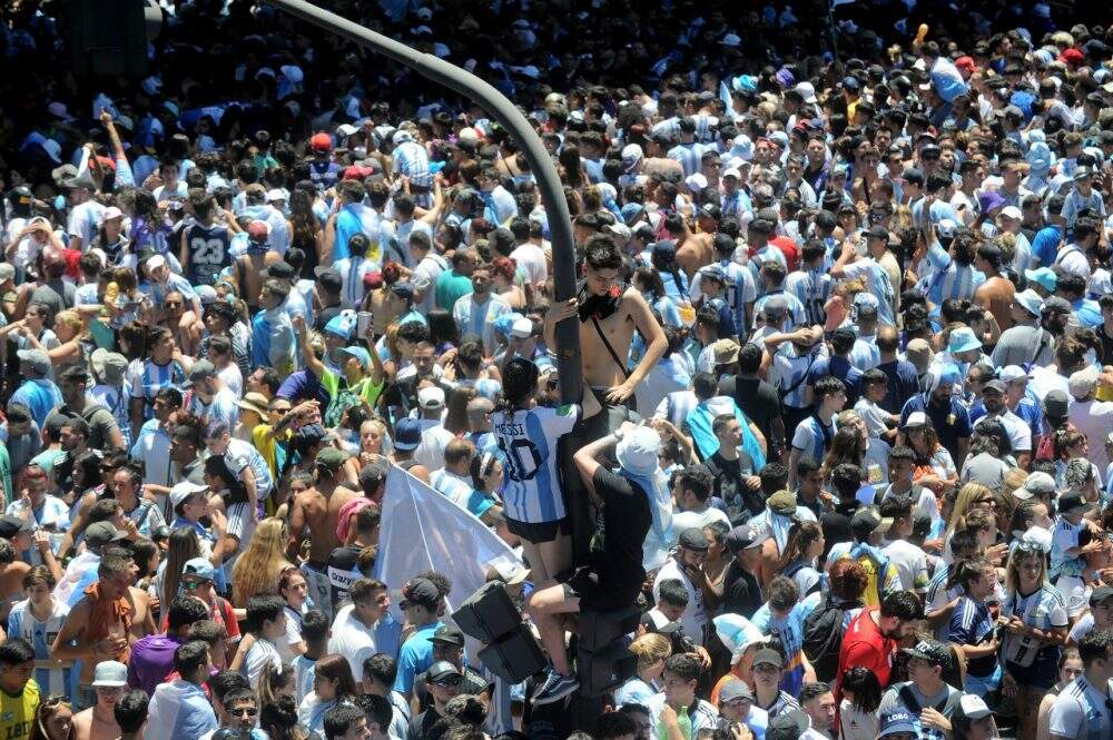 Uma multidão nunca antes vista na Argentina lotou as ruas de Buenos Aires para comemorar o título da Copa do Mundo. Vídeos divulgados nesta terça-feira (20) em redes sociais mostram diversos argentinos caindo de postes de semáforos, telhados, árvores e locais altos em que subiram para comemorar o título da Argentina na Copa do Mundo.