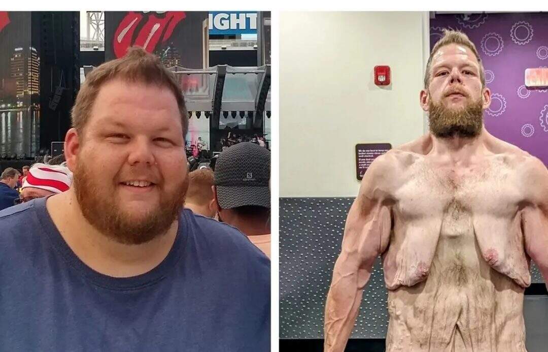 Foto: ReproduçãoCole Prochaska, de 39 anos, criou um perfil no Instagram e fez sua primeira postagem em 4 de abril de 2021. A foto mostrava o norte-americano comemorando a perda de 40 kg. “Obrigado pela inspiração, galera”, escreveu na legenda. “A gente se vê com 110 kg”, acrescentou. A publicação marcou o início do processo de transformação que seu corpo passou. Nesta semana, ele celebrou a perda de 163 kg e tomou coragem para tirar a camisa. O gesto serviu para mobilizar seus seguidores a ajudarem em uma vaquinha. Ele quer arrecadar recursos para realização de cirurgias de retirada do excesso de pele.