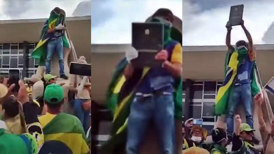 O designer Marcelo Fernandes Lima, de 50 anos, que é de São Lourenço (MG) e possui uma empresa com sede em Campinas (SP), é o homem que aparece em fotos com a réplica na mãos na Praça dos Três Poderes, em Brasília (DF), no dia dos ataques de 8 de janeiro.