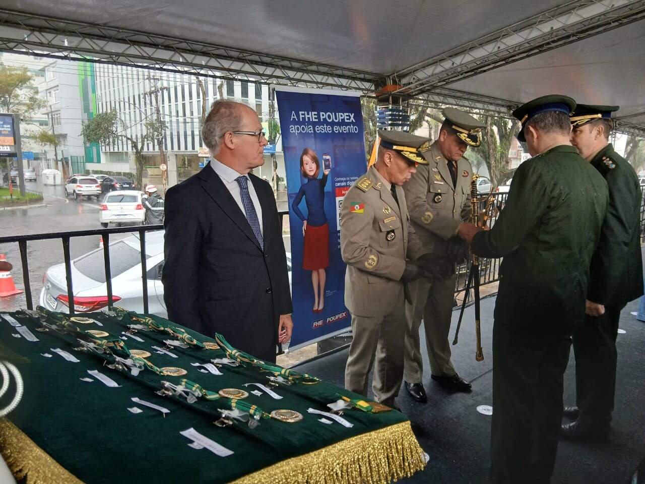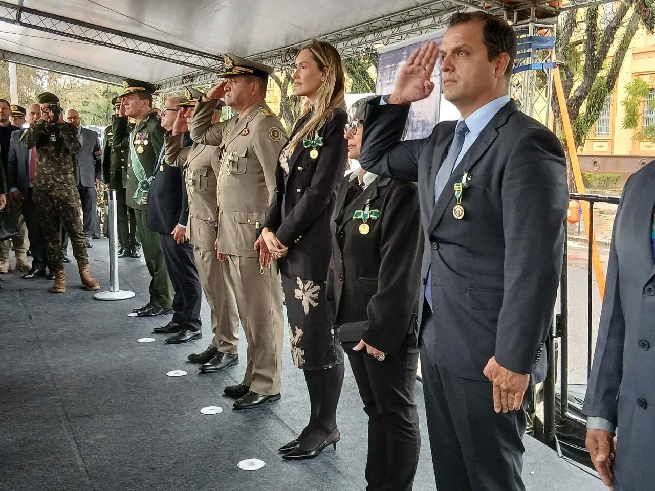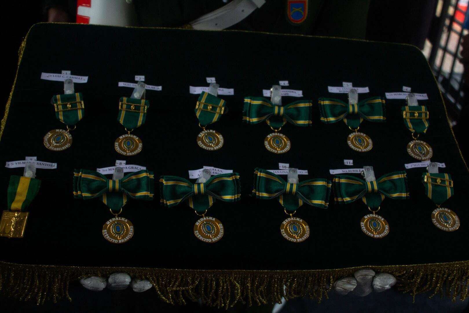 Durante a solenidade, personalidades civis e militares foram agraciadas com as seguintes condecorações: “Medalha Exército Brasileiro” e “Medalha do Pacificador”