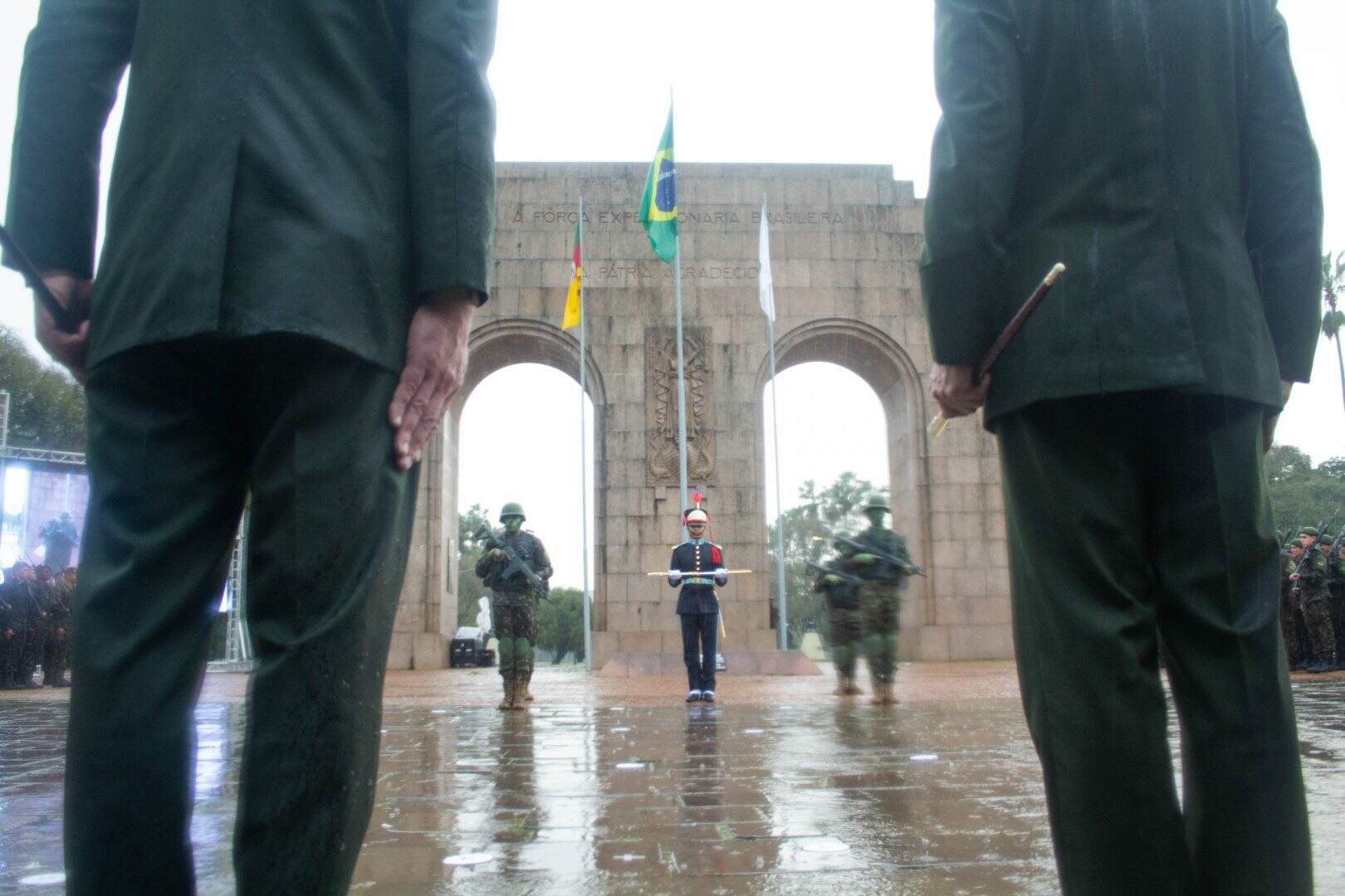Foto: Comado Militar do SulPORTO ALEGRE (RS) — Em meio à chuva persistente que caiu sobre a capital gaúcha nesta sexta-feira (22), o Comando Militar do Sul realizou uma cerimônia solene em homenagem ao Dia do Soldado, reunindo autoridades civis e militares diante do Monumento ao Expedicionário, no Parque da Redenção. O evento, marcado por discursos, condecorações e reverência à história, reafirmou o papel da instituição na formação de valores e na defesa da soberania nacional.