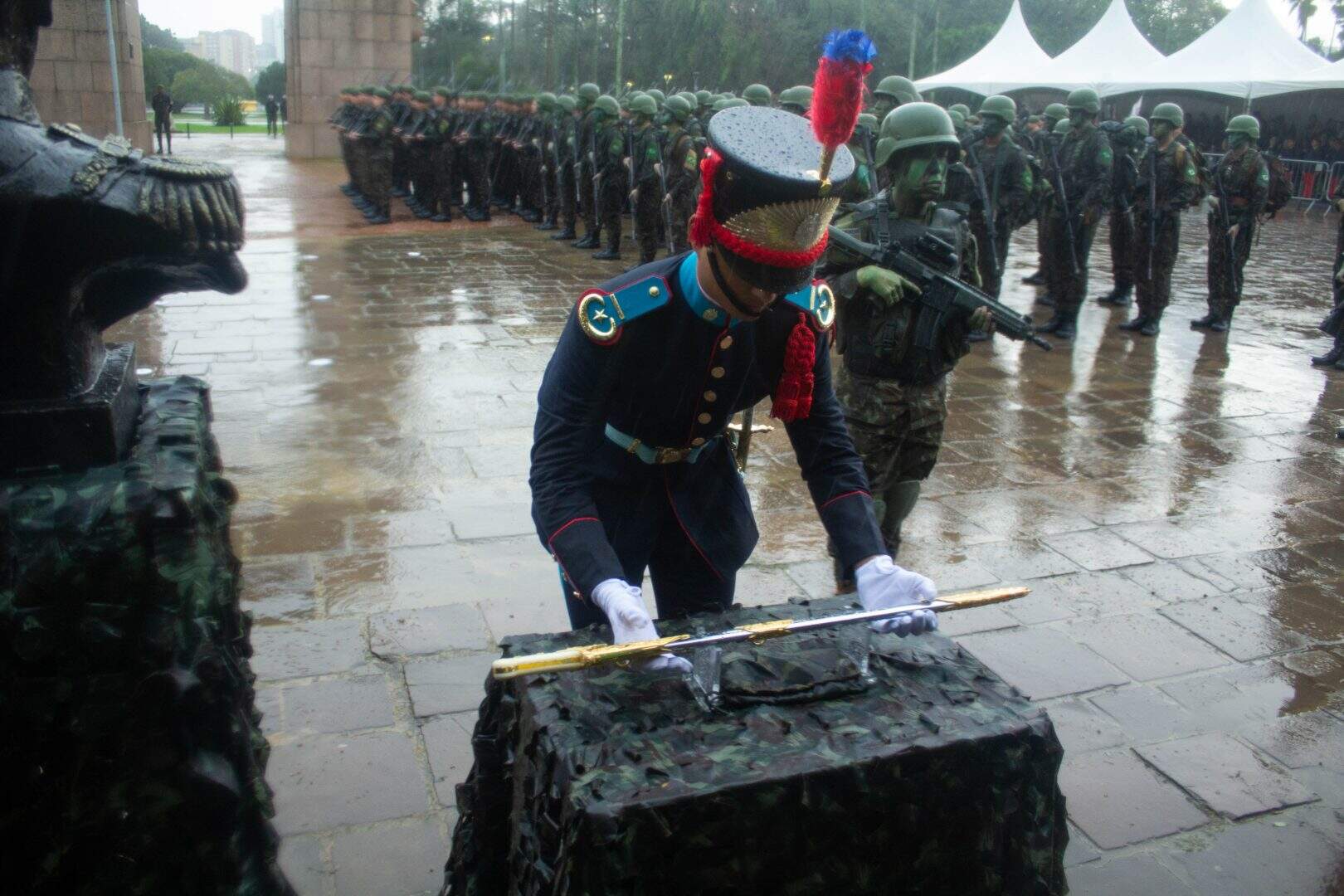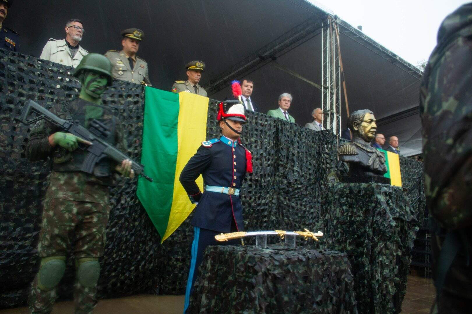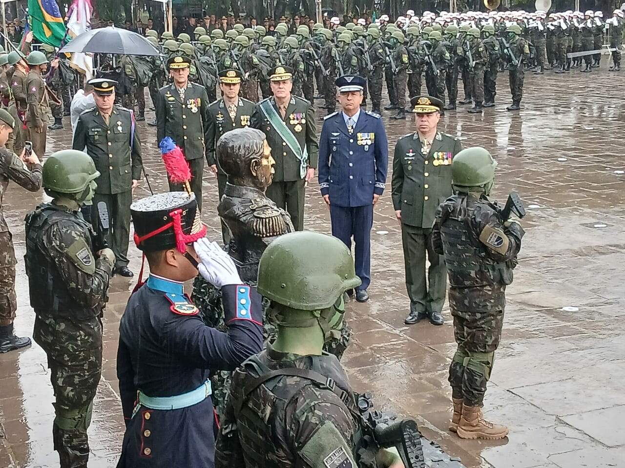 A presença da réplica do Sabre de Caxias, trazida de Brasília especialmente para a ocasião, conferiu à cerimônia um caráter simbólico profundo — evocando o legado do patrono do Exército Brasileiro, Duque de Caxias.