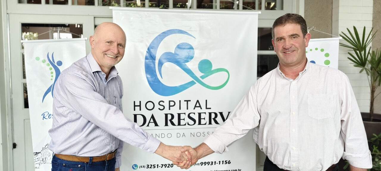 Paulo Hermann (presidente do Conselho) e Luizinho Saalfeld (presidente do Hospital)ospital juntos buscando atendimento de excelência com foco no produtor rural, cuidando da saúde na direção do Hospital da Reserva.