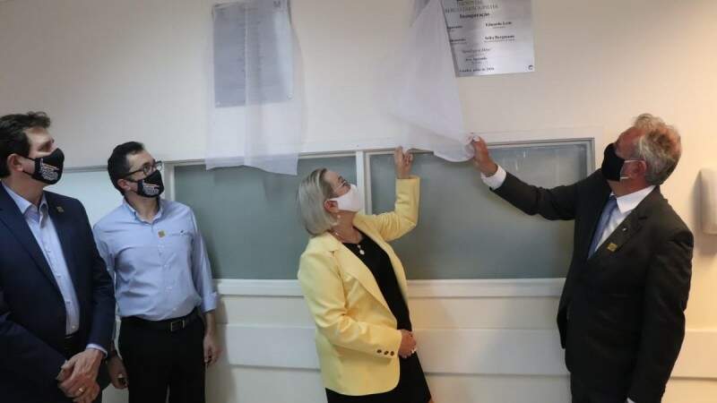 Foto: Ascom SESO Hospital Berço Farroupilha, em Guaíba, foi inaugurado na tarde desta terça-feira (21) com a presença da secretária da Saúde, Arita Bergmann, e do prefeito da cidade, José Sperotto. O novo espaço conta com dez leitos de UTI (unidade de tratamento intensivo) e 30 leitos clínicos. Neste momento de pandemia, todos serão destinados ao atendimento de pacientes com Covid-19.