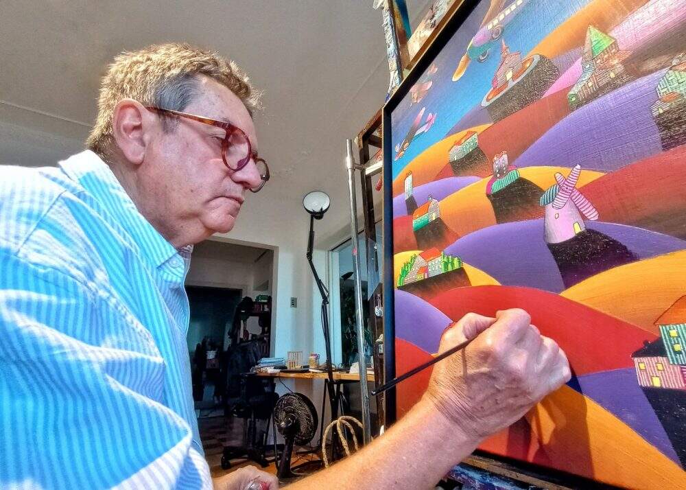 “Eu me aposentei da atividade docente em maio do ano passado, bem na época da enchente, de modo que a combinação de maior tempo livre e isolamento forçado acabou permitindo que eu me dedicasse à pintura em tempo integral em meu ateliê, na avenida Independência”, conta o artista de 69 anos – 51 de carreira. Em breve, ele retomará a atividade acadêmica como professor convidado do Programa de Pós-Graduação em Artes Visuais da UFRGS.