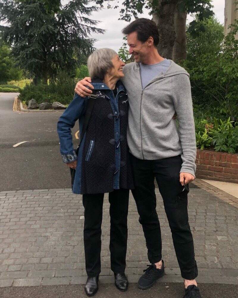 Hugh Jackman mostrou que, definitivamente, fez as pazes com a mãe. Grace McNeil abandonou a família quando o ator tinha 8 anos de idade.