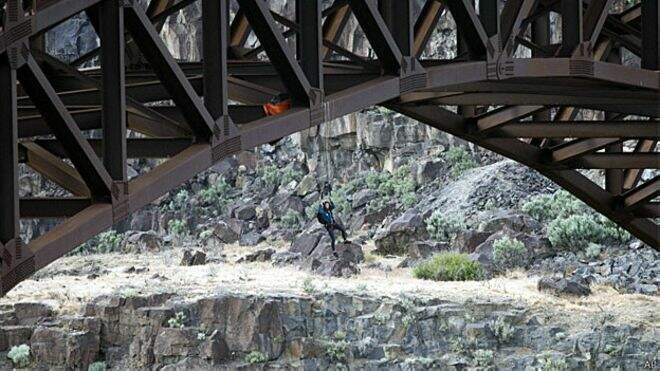 Um americano de 73 anos morreu ao tentar um salto acrobático de uma ponte com o paraquedas em chamas nos Estados Unidos. James Hickey tentou o salto a partir da ponte Perrine, no Estado americano do Idaho. A ponte fica a 150 metros de um rio. O salto ocorreu em 7 de maio.