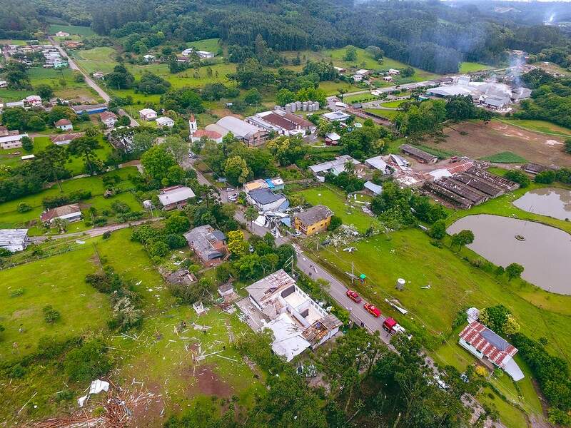 “As imagens aéreas do desastre na comunidade de Vila Rica, interior de Farroupilha, mostram que o padrão de danos indica que os destroços foram jogados em diferentes direções, o que caracteriza o fenômeno denominado tornado. Os dados demonstram o avanço de uma tempestade sobre o local atingido, sendo que os ventos potencialmente superaram os 100 km/h na localidade, e geraram um tornado de curta duração”, informou a Defesa Civil gaúcha.