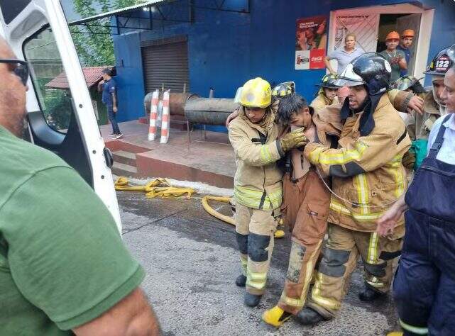 Cerca de 100 bombeiros de quatro cidades do Paraguai ajudam no combate às chamas. Durante o trabalho, na tarde de segunda, um bombeiro ficou preso no 22º andar e precisou ser resgatado.