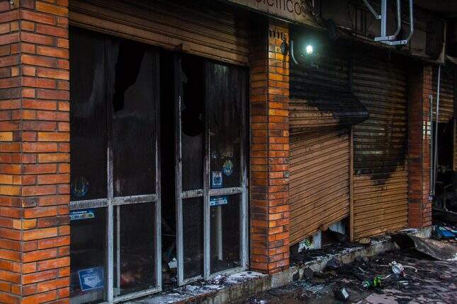 Porto Alegre 28.07.15 – Incêndio destrói loja de material elétrico no térreo de edifício e obriga moradores a deixarem o prédio atingido na Av. Getúlio Vargas com a Rua Botafogo. – FOTO – Jackson Ciceri