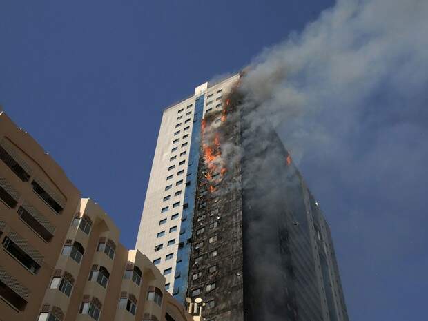 Um incêndio atingiu na quinta (1) um prédio residencial de 24 andares na cidade de Sharjah, nos Emirados Árabes Unidos, espalhando uma grossa cortina de fumaça pela cidade e complicando o tráfego para as pessoas que saíam do trabalho no final da tarde.