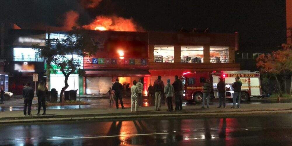 Um incêndio de grandes proporções destruiu, na madrugada deste sábado (9), um bazar que fica às margens da Avenida Flores da Cunha, na parada 50, em Cachoeirinha, na Região Metropolitana de Porto Alegre.