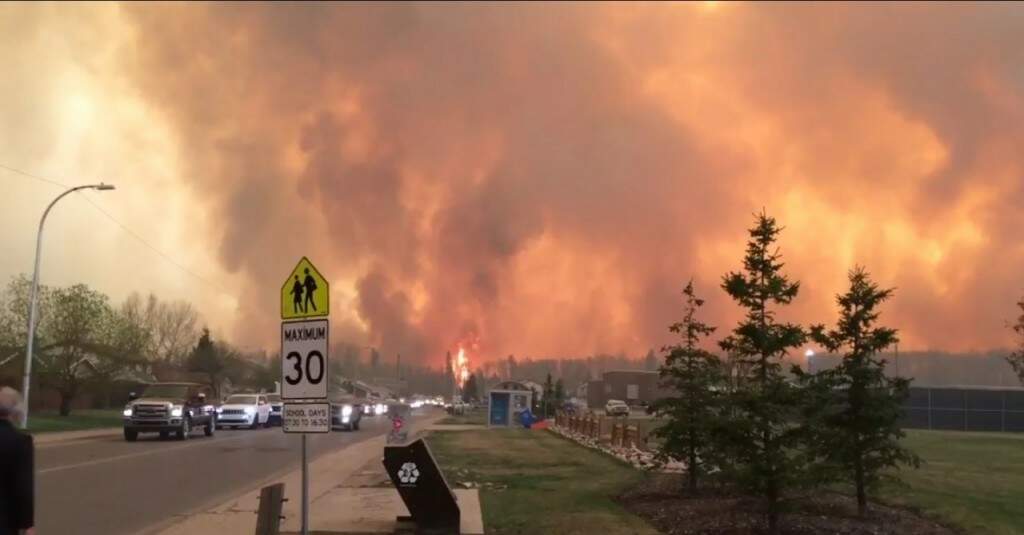 Casas, postos de gasolina e um hotel estavam entre os prédios destruídos na cidade, na província de Alberta. Durante a evacuação, houve engarrafamento nas estradas. Muitos moradores fugiram para o Norte depois que as chamas levaram ao fechamento da rodovia, em direção ao Sul. Não foram divulgados registros de feridos.