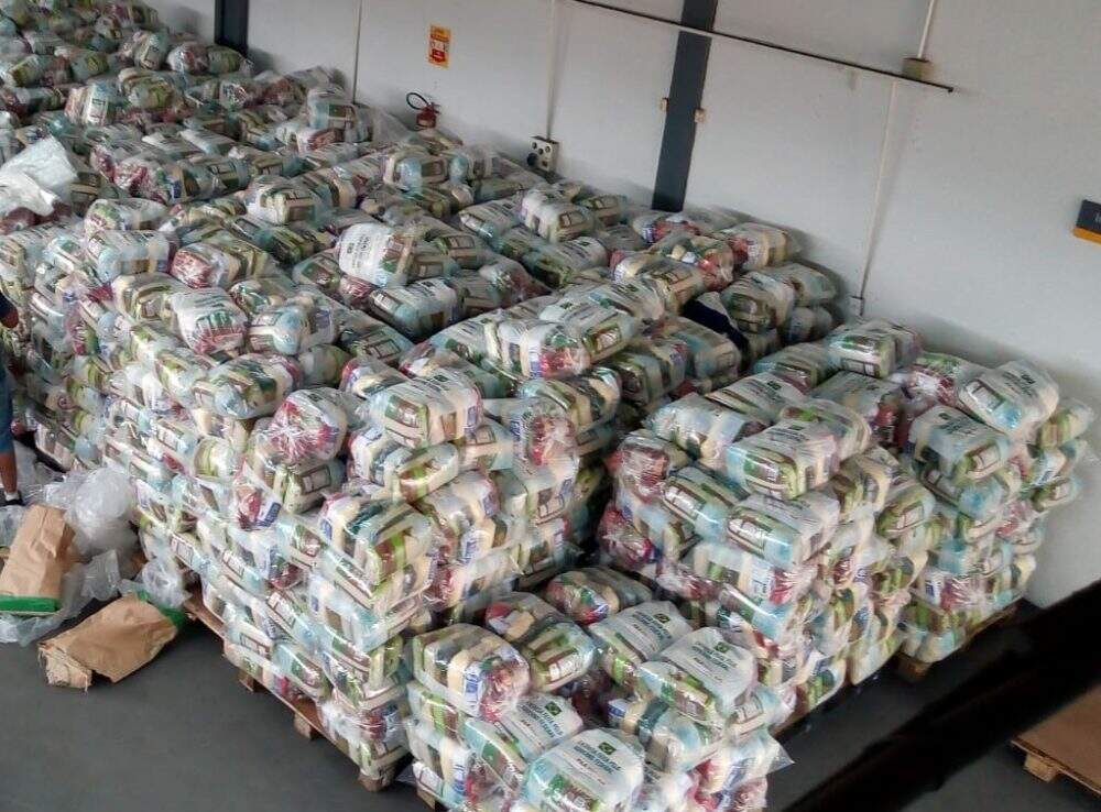 Cada kit pesa 21,2 quilos e é composto por açúcar mascavo, arroz, farinha de milho, farinha de trigo, feijão, leite em pó integral, macarrão com ovos e linguiça mista defumada.