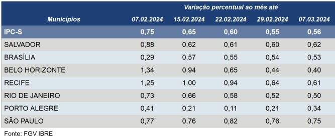 Entre as capitais pesquisadas pela FGV, o IPC-S subiu apenas em Porto Alegre e Salvador na primeira semana de março
