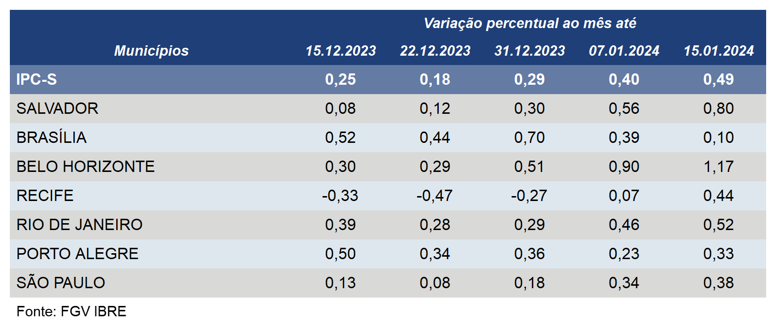 Além de Porto Alegre, o IPC-S acelerou em outras cinco das sete capitais pesquisadas pela FGV na segunda semana de janeiro.