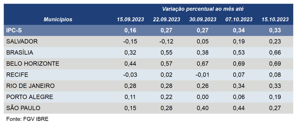 Além de Porto Alegre, o IPC-S aumentou em outras três capitais pesquisadas pela FGV na segunda semana de outubro.