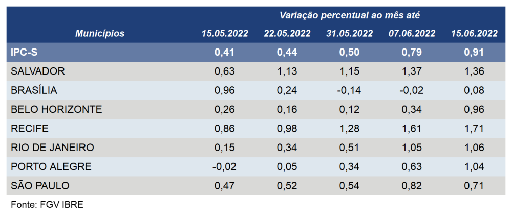 Além de Porto Alegre, o IPC-S aumentou em outras quatro das sete capitais pesquisadas pela FGV na segunda semana de junho.
