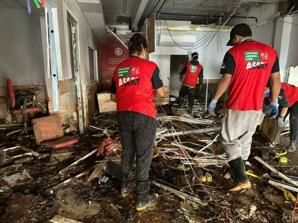 Voluntários da ASCAT retiraram estruturas e equipamentos danificados do CT (Foto: Divulgação/Internacional)