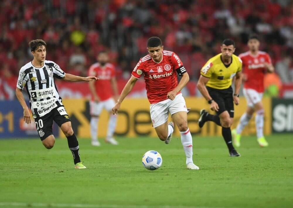 Os primeiros 15 minutos foram de domínio do Inter. Escalado com três zagueiros, o Santos tentava encaixar a marcação contra o ataque colorada, que criou boas chances de gol mas sem repercussão no placar.
