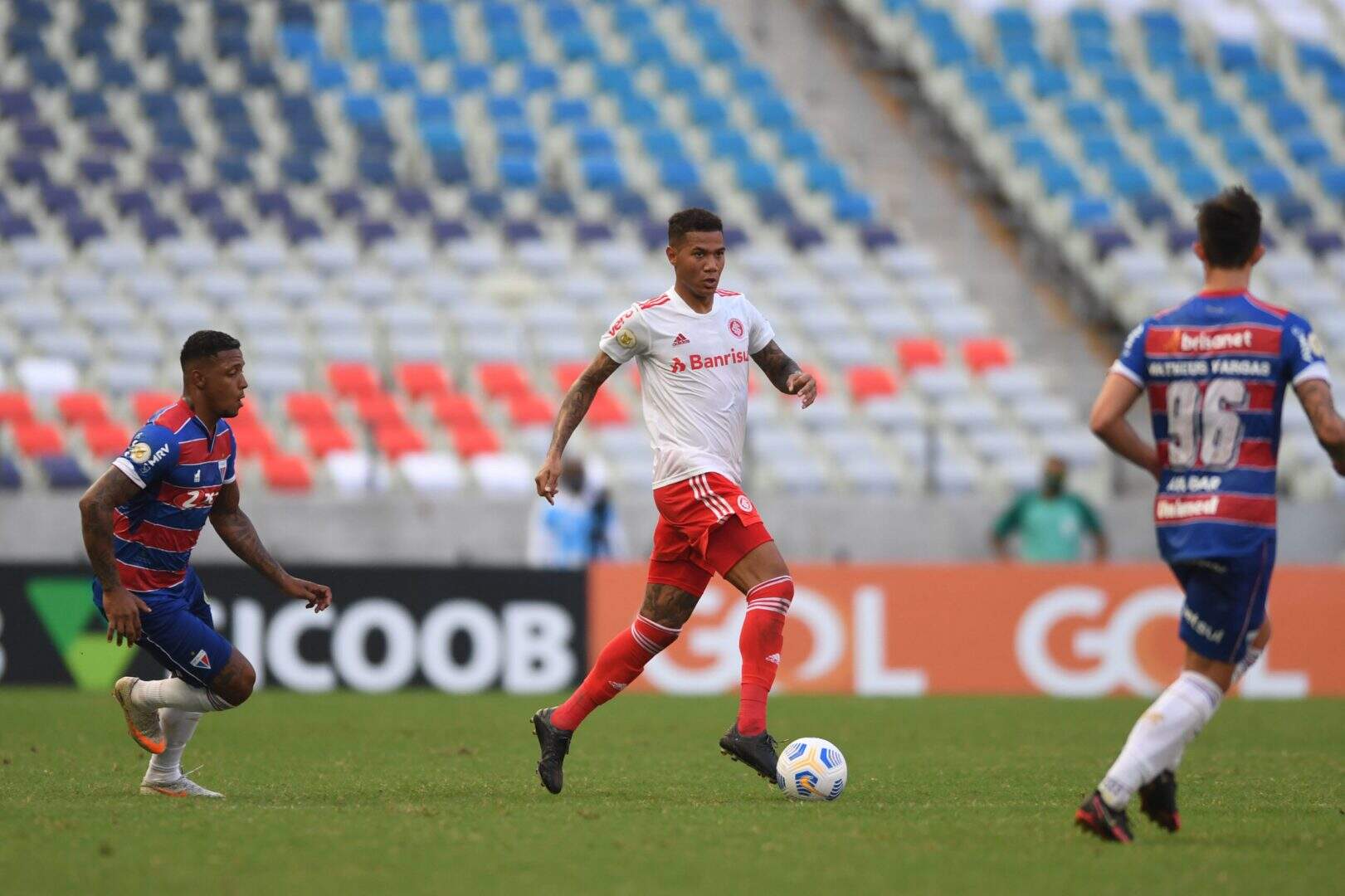 Foto: Ricardo Duarte/InternacionalO primeiro tempo foi movimentado, com ataques do Fortaleza, que pressionou e marcou firme o adversário. O Internacional, por outro lado, era lento e não conseguia se impor, apesar de ter tido mais posse de bola – sequer finalizou.