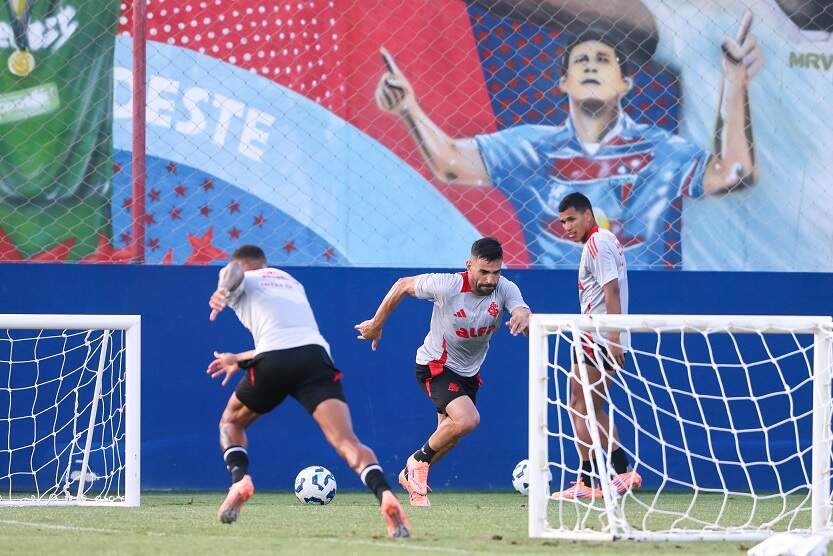 A equipe colorada finalizou a preparação para o confronto com o Ceará na tarde dessa quarta-feira (19). Após desembarcar na capital cearense no dia anterior, o grupo realizou, no CT do Fortaleza, o último treino antes da partida. O treinamento começou com atividades físicas no gramado. Depois, os jogadores fizeram trabalhos com bola, realizando os últimos ajustes para enfrentar o Ceará.