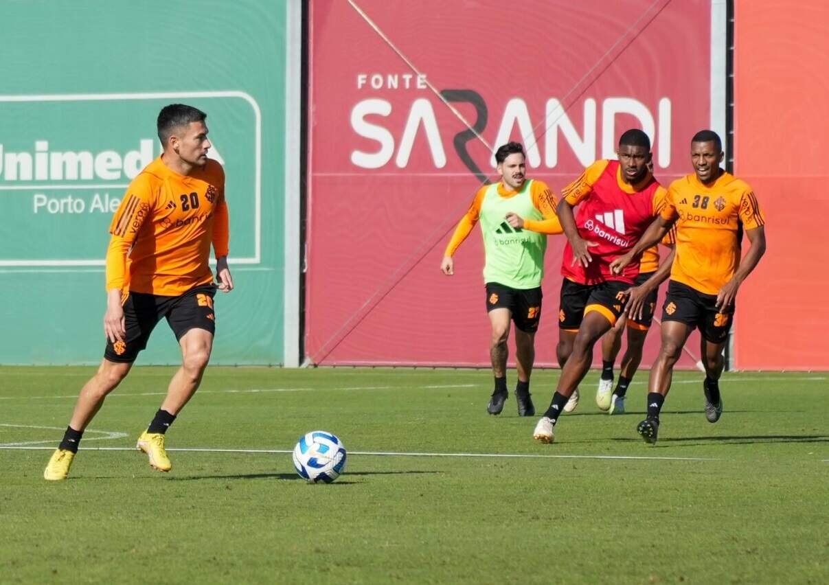 Quem esteve em campo contra o Atlético-MG realizou atividades físicas no campo e na academia, enquanto os demais realizaram exercícios com bola no gramado. O campo já está livre do alagamento causado recentemente pela chuva e transbordo do Guaíba no local.