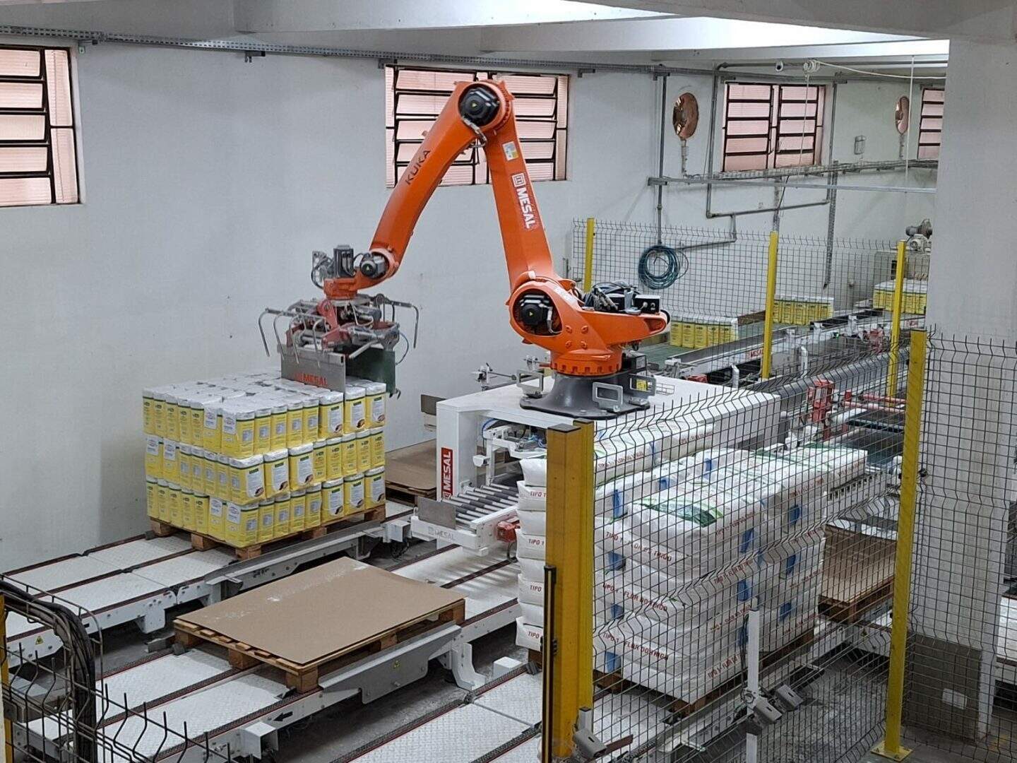 O novo sistema de robotização é responsável pelo processo de paletização das linhas industriais de pacotes de 1 e 5 quilos e da sacaria de 25 quilos, com funcionamento ininterrupto de 21 horas, por seis dias da semana.