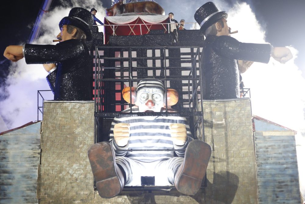 A Niterói usou a imagem do palhaço Bozo para se referir a Bolsonaro em dois momentos do desfile: na comissão de frente, em que atores e dançarinos representavam também Lula e os ex-presidentes Dilma Rousseff e Michel Temer, e no carro alegórico que mostrou uma escultura gigante do palhaço atrás das grades.