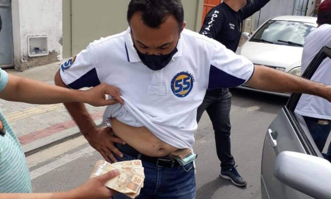 A Polícia Civil do Ceará prendeu em uma ação em Caucaia, na Grande Fortaleza, na manhã do sábado (28) Miguel Carolino de Amorim, irmão do prefeito e que acabou perdendo o segundo turno, Naumi Amorim (PSD). Miguel e mais quatro secretários municipais foram flagrados com cerca de R$ 600 mil em espécie, estando parte da quantia escondida na cueca e parte em sacos. A suspeita é de crime eleitoral e os presos foram encaminhados à sede da Polícia Federal, em Fortaleza.
