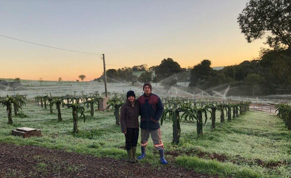 “As baixas temperaturas que Soledade registra sempre nos causaram medo. Pesquisamos e descobrimos que era possível produzir. No inverno passado tentamos cobrir as plantas, mas não funcionou. Então, investimos na irrigação e no sistema antigeada para este inverno. Estamos curiosos para observar como as plantas irão se comportar durante a estação, pois essa foi a primeira grande geada que atingiu a plantação esse ano”, comenta Bruna, ao se referir à forte geada no município na sexta-feira (03/07). Além da pitaya, o casal produz temperos, repolhos, couve e brócolis, além de uma área cultivada com nogueira pecã que ainda não iniciou a produção.