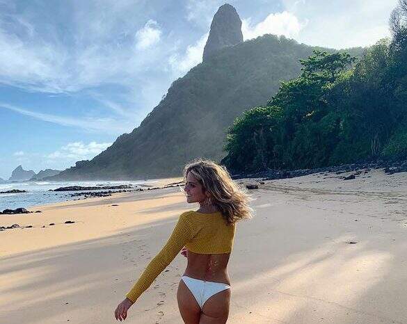 Na imagem, além da paisagem maravilhosa, também chamou a atenção o bumbum impecável da loira, que caminha pelas areias de biquíni. “Mulher, mas tu arrasa”. “Sua beleza se encaixa com a natureza”, foram alguns dos comentários deixados pelos fãs.