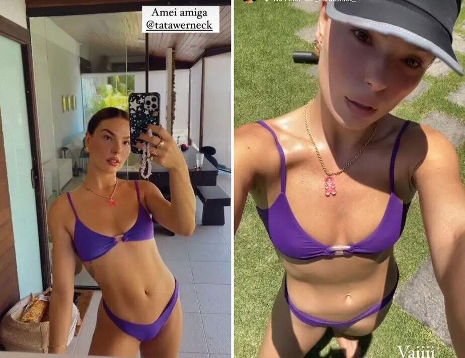 Foto: Reprodução/InstagramIsis Valverde apareceu nos stories usando um biquíni lilás da marca da qual Tata Werneck é sócia. Ela marcou a atriz e elogiou a peça. A atriz, que atualmente se divide entre o Brasil e os Estados Unidos, apareceu pouco depois tomando sol com a peça. Em entrevista à Quem, Isis falou sobre a adaptação do filho, Rael, de 3 anos, com as mudanças de lar.