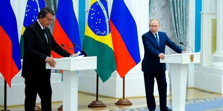 Presidente Bolsonaro (E) se encontrou com Putin recentemente, o que desagradou os EUA