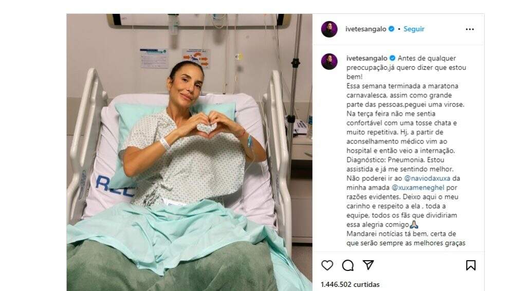 De acordo com Ivete, ela contraiu uma virose após a maratona de Carnaval e, ao apresentar tosse, procurou os médicos.