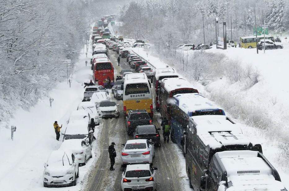 A ilha de Jeju, popular local de férias, foi atingida por fortes ventos e uma nevasca. Os voos foram cancelados, fazendo com que cerca de 30 mil pessoas perdessem os voos até o local durante o feriado do Ano Novo Lunar.