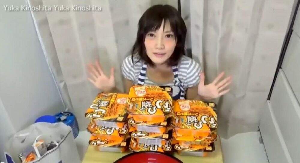 Yuka, que participa de concursos esquisitos de comida, publicou um vídeo de sua façanha no YouTube. Nas imagens, ela despeja vários pacotes de macarrão em uma tigela, acrescenta temperos e molhos e come tudo rapidamente – sempre acrescentando mais molho à mistura.