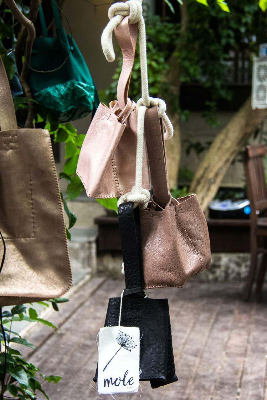 No detalhe: as bolsas sustentáveis da MOLE Bags, produzidas com couros reaproveitados da indústria e cuidadosamente selecionados. (Foto: Jackson Ciceri/O Sul)