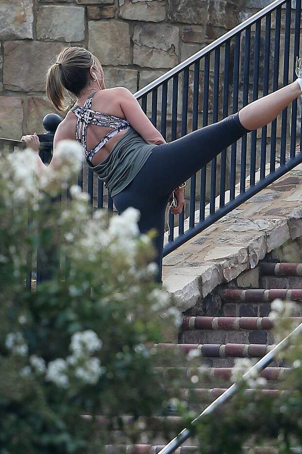 A atriz Jennifer Aniston foi vista se alongando durante um intervalo das filmagens do longa “Mother’s Day” em um parque na Geórgia enquanto rodava uma cena de corrida. Nos cliques é possível ver que a atriz de 46 anos continua super em forma.