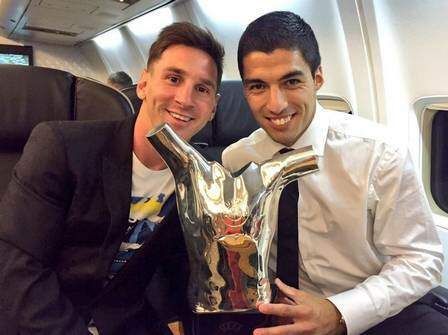Conhecido por suas mordidas em campo, Suárez resolveu atacar novamente, mas desta vez a “vítima” foi um amigo e companheiro de elenco: Lionel Messi. Na premiação que elegeu o argentino como melhor jogador da Europa na última temporada, o uruguaio do Barcelona tentou morder o craque, que se desvencilhou rapidamente. Tudo não passou de uma brincadeira entre amigos, é claro.