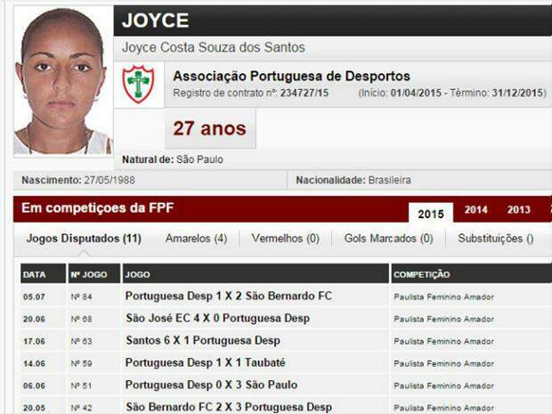 A atleta chegou a disputar o Mundial Sub-20 em 2008 pelo Brasil, segundo informações do site da Fifa. No site da Federação Paulista de Futebol, ela consta como contratada pela Portuguesa até dezembro deste ano. O último jogo que ela disputou pelo clube foi em julho, pelo campeonato Paulista Feminino Amador.