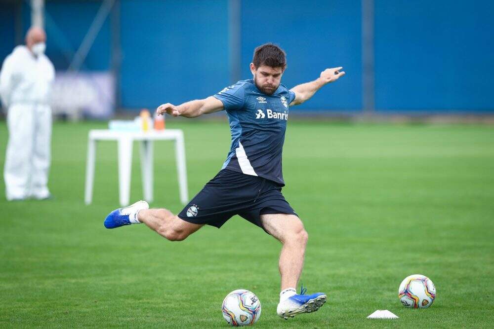 A quinta-feira (21) marcou o primeiro trabalho com bola da semana no Grêmio. Após dias de atividades físicas, os jogadores dos grupos do turno da manhã já realizaram treinos com conclusões a gol, sob orientação do auxiliar técnico Alexandre Mendes.