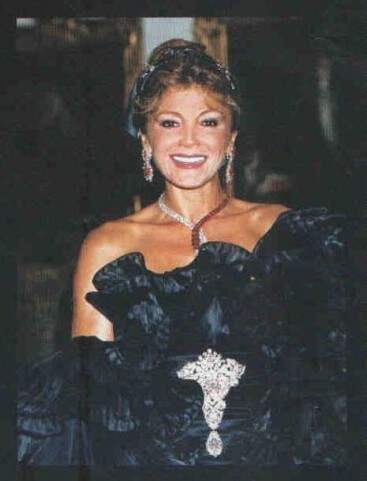 A baronesa Thyssen usando o ornamento de valor histórico, além da excepcional qualidade dos diamantes de elaborada montagem do século XIX. (Reprodução)