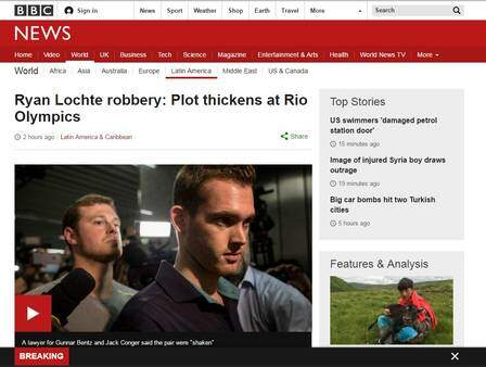 O enredo também foi parar na página principal do site do “The New York Times”, que menciona também testemunhas ouvidas pela polícia brasileira e que endossam o veredicto de que Lochte e seus amigos inventaram tudo.