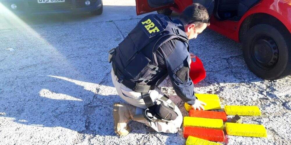 Ao vistoriarem o veículo, o efetivo da PRF encontrou os tijolos do entorpecente embaixo do banco traseiro. A motorista, de 25 anos, foi presa em flagrante por tráfico de drogas.