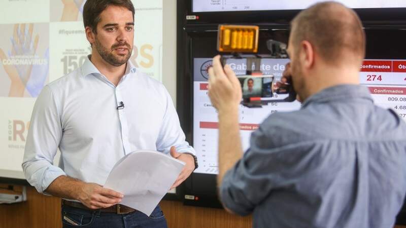 Foto: Felipe Dalla Valle/Palácio PiratiniEm transmissão ao vivo na tarde desta terça-feira (31), o governador Eduardo Leite agradeceu aos Poderes Judiciário, Legislativo e órgãos autônomos do Rio Grande do Sul pela devolução ao Executivo de R$ 150 milhões para o enfrentamento do coronavírus no Estado. Os recursos são oriundos de um contingenciamento nos orçamentos da Assembleia Legislativa, do Tribunal de Justiça, do Ministério Público, da Defensoria Pública e do Tribunal de Contas do Estado.