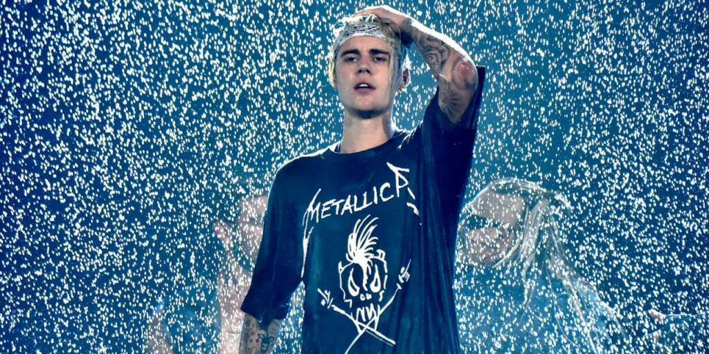 O cantor agiu como se nada tivesse acontecido e continuou dançando após um tombo que levou durante a performance de “Sorry”, principal hit de seu novo disco, “Purpose”.