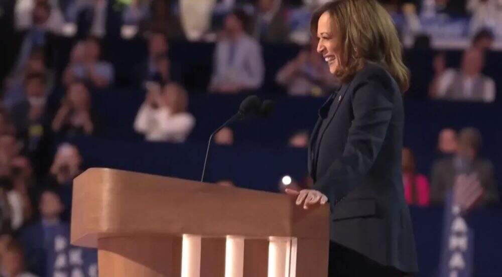 Kamala continuou: “Manter os princípios fundamentais sagrados da América, do estado de direito às eleições livres e justas, à transferência pacífica do poder. Serei uma presidente que nos une em torno de nossas maiores aspirações. Uma presidente que lidera e ouve, que é realista, prática e tem bom senso. E sempre luta pelo povo americano. Este tem sido o trabalho da minha vida”.